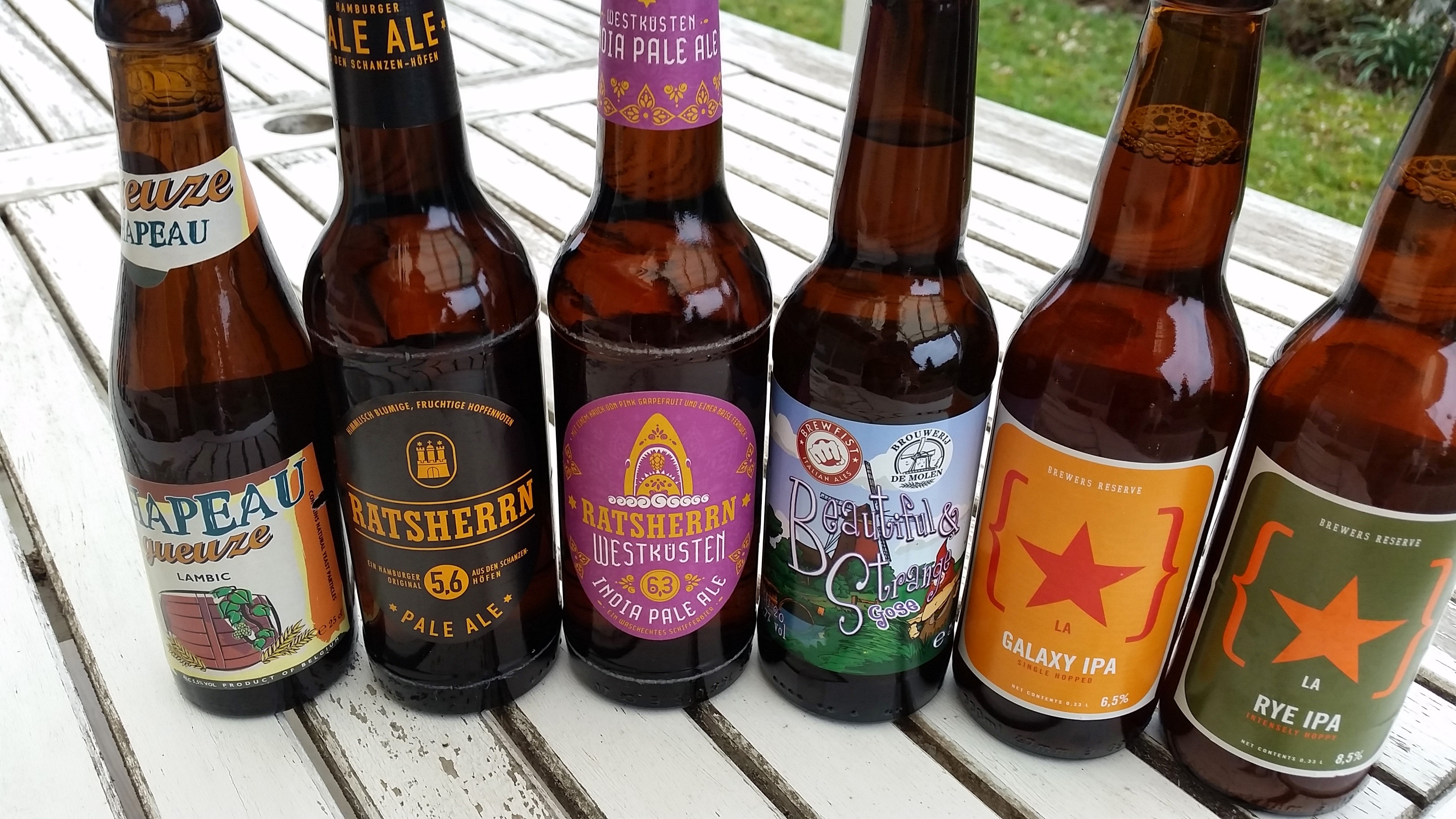 Jeg tog et par øl fra norske Lervig Aktiebryggeri, to fra tyske Ratsherrn, en gueuze og en gose fra Italien og Holland og jeg startede med den sidste.