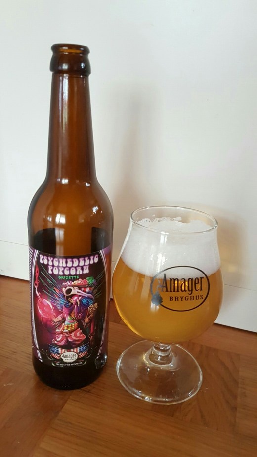 Den første af øllene jeg åbnede var dog Psychedelic Popcorn, som er et samarbejde med brewpubben Forrest & Main, som ligger i Ambler, Pensylvania. De brygger bl.a. med en gær de hvert andet år høster på bagsiden af bygningen og hvert andet år med en gær fra forsiden. Det er en af disse gærstammer, som White Labs har arbejdet med i København. Den er sammen med en lækker blanding af humler, som f.eks. Citra og Mosaic, blevet til en grisette. En grisette er en let saison, som, ifølge Papsø, skulle være en rigtig arbejderøl fra byerne. Det ved jeg ikke noget om, men i dette tilfælde er der i hvert fald tale om en rigtig dejlig tørstslukker, der er let med sine kun godt 4% og lyse maltsammensætning. Humlen giver en masse frugtige aromaer, som efterfølges af en lille belgisk følelse fra gæren. Den er egentlig ret markant i sin smag, men det underbygger stilarten ganske fint og giver desuden en ret tør og bitter øl. Den må gerne blive en fast del af Amagers sommerprogram, hvor jeg tænker den vil kunne blive en glimrende tilføjelse. Amager Bryghus kørte i øvrigt en lille meningsmåling på Facebook om farven på etiketten og rart at se, at den flotte lilla blev valgt. Den passer fremragende til den fantastiske tegning og til øllets navn.
