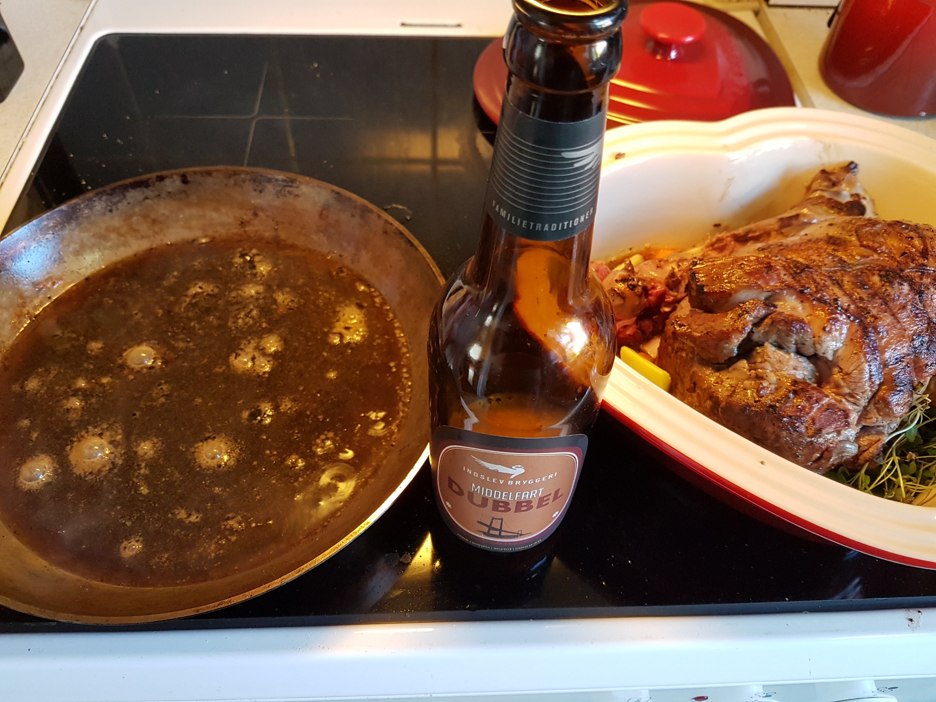 20180330_1125471325011118.jpg 30/03/2018 at 3000 × 2250 Panden blev kogt af med hønsefond og Middelfart Dubbel fra indslev Bryggeri.