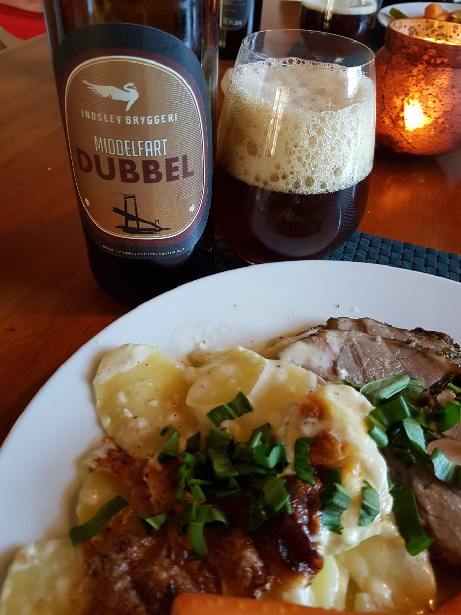 20180330_18015643345105.jpg 30/03/2018 at 3024 × 4032 Det hele blev serveret med flødekartofler og den sigtede væske fra fadet, som blev pisket op med lidt smør. Jeg serverede naturligvis Middelfart Dubbel til. Det var ganske fremragende.