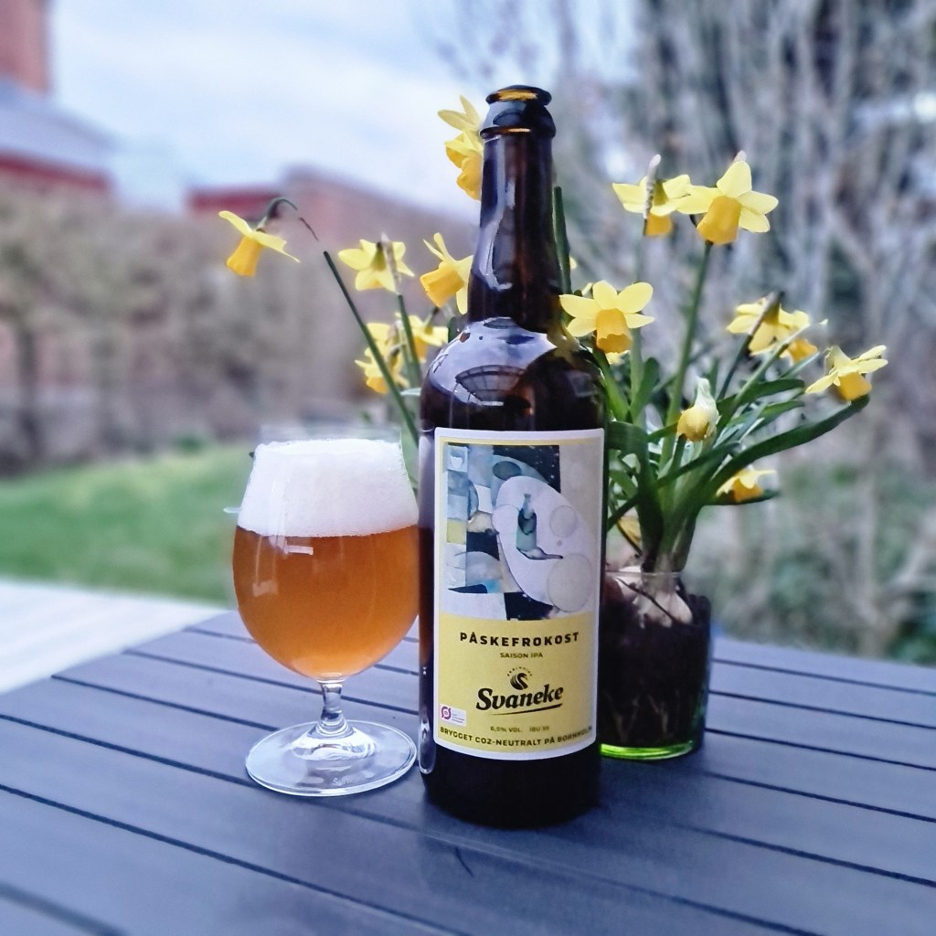 Tredje øl er fra Svaneke på Bornholm, og det er også en øl, som jeg plejer at købe hvert år, for den rammer bare et eller andet hos mig, som jeg ikke nødvendigvis helt ved hvad er, men det virker for mig. Den er købt i SuperBrugsen, som har den hvert år, men jeg synes også, at have set den i Rema1000. Påskefrokost kombinerer to stilarter, som jeg holder meget af, nemlig ipa og saison. Man får den relativt lette krop med lys malt og med brød og let sødme, og så får man på samme tid bid fra humle med citrus og lidt harpiks, mens saisonen byder ind med nelliker og peber. Begge stilarter kan bære noget bitterhed, så det er selvfølgelig også til stede, inden det hele slutter ret tørt. Det er øl, der kræver noget modspil fra den mad, som den skal sættes sammen med, så jeg kunne godt anbefale den som en outsider til lammet, eller til nogle krydrede lune retter på frokostbordet, hvor den med garanti vil kunne noget.