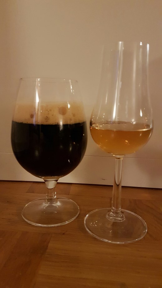 Her skulle de to så spille sammen og det går faktisk ganske godt. Øllet bliver måske lidt overvældet af whiskyen, som til gengæld får lidt ekstra bid, mens det søde i øllet ryger i baggrunden og efterlader et lidt mere bittert indtryk. Røgen i begge komplimenter og underbygger hinanden.