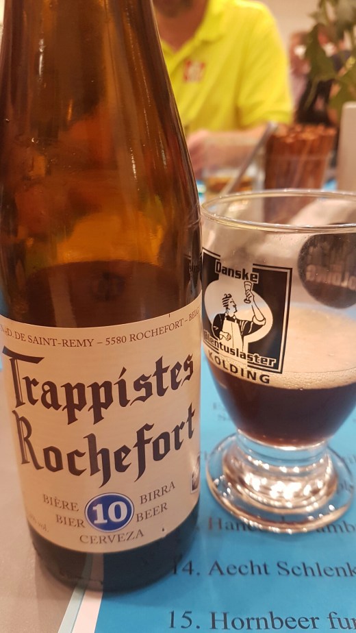 En del deltagere så efterhånden lidt slidte ud, men udsigten til programmet i sidste runde livede dem op og selv om lydniveauet indimellem var lidt vel højt i forhold til præsentationerne, så kom vi rigtig fint i mål. Afslutningen blev en sammenlignende smagning af Westvleteren 12 og Rochefort 10, hvor Berthelsen ved håndsoprækning kårede Kolding og omegns favorit. Det blev i øvrigt ganske klart Rochefort 10, men om det var af reelle grunde eller om folk også tog value for money med i betragtningen skal jeg ikke kunne sige, men min favorit vandt i hvert fald. Den står altid på bordet hos familien Ousen juleaften, hvor den gør et perfekt job.