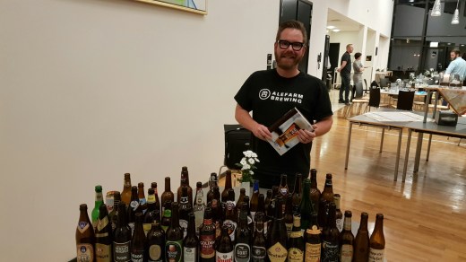 Dem der følger min side på Facebook kunne i går se, at jeg brugte det meste af dagen på en ganske omfangsrig smagning, der var baseret på på Carsten Berthelsen og Rolf Nielsens bog “50 øl du skal smage før du dør”, som i nogle år har stået i min reol. Den slags bøger har det jo med at blive outdatede, så den er da også udkommet i en revideret udgave, som denne smagning tog udgangspunkt i. Arrangementet var kommet i stand, da Thor Abildgaard fra Horsens sammen med sin ølgruppe skulle finde på en smagning. Omfanget af øl og de logistiske udfordringer gjorde, at Thor foreslog Henrik Feldthaus fra Beershoppen i Kolding at man arrangerede det som en offentlig smagning. Den var Henrik med på og planlægningen kunne gå i gang. Henrik fik fremskaffet det meste af øllet, enkelte måtte dog erstattes af lignende øl, f.eks. var Brewpub Cole Porter blevet til Hornbeers Charlie´s Cool Porter, og sammen med René fra butikken blev en del af det hentet hjem fra rundt omkring i Danmark eller Belgien.