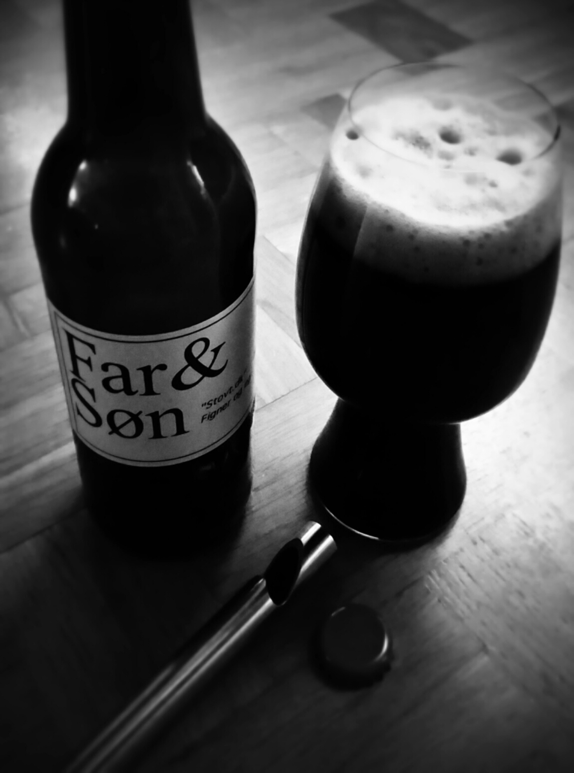 Martin fra www.stovt.dk har sammen med Bo Rino Christiansen fra Kunstbryggeriet Far & Søn brygget en imperial stout med figner og lagret med eg. Det er jo et godt udgangspunkt for en god oplevelse, hvis det bliver gjort ordentligt og det skulle der være gode muligheder for her, hvis øllet er samme standard som bloggen, hvor Martin svinger sin sprogligt elegante pen. Jeg vil lade Martin præsentere Kunstbryggeriet Far & Søn, da jeg ikke sikker på, at jeg kan gøre det bedre end det her.