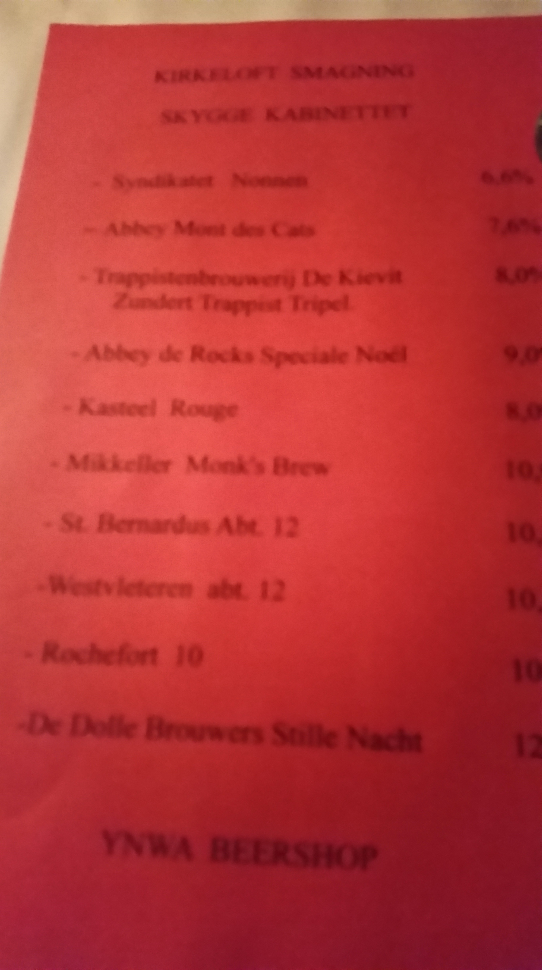 Efter denne lille seance rykkede selskabet andægtigt op på kirkens loft, hvor vi under kyndig vejledning af en gæv ølbroder i form af Henrik Feldhaus fra YNWA Beershop, skulle igennem en række klosterøl fra Europa.