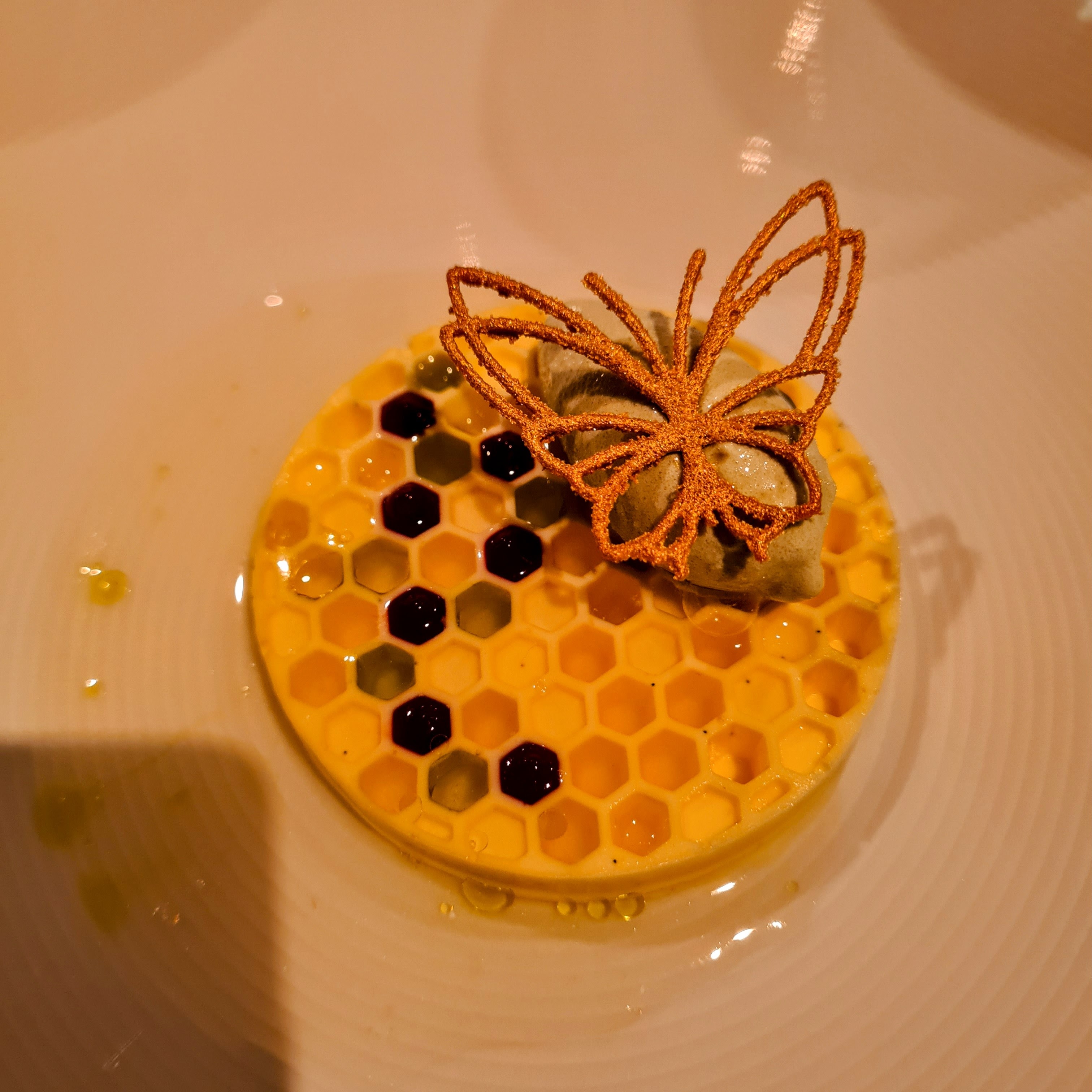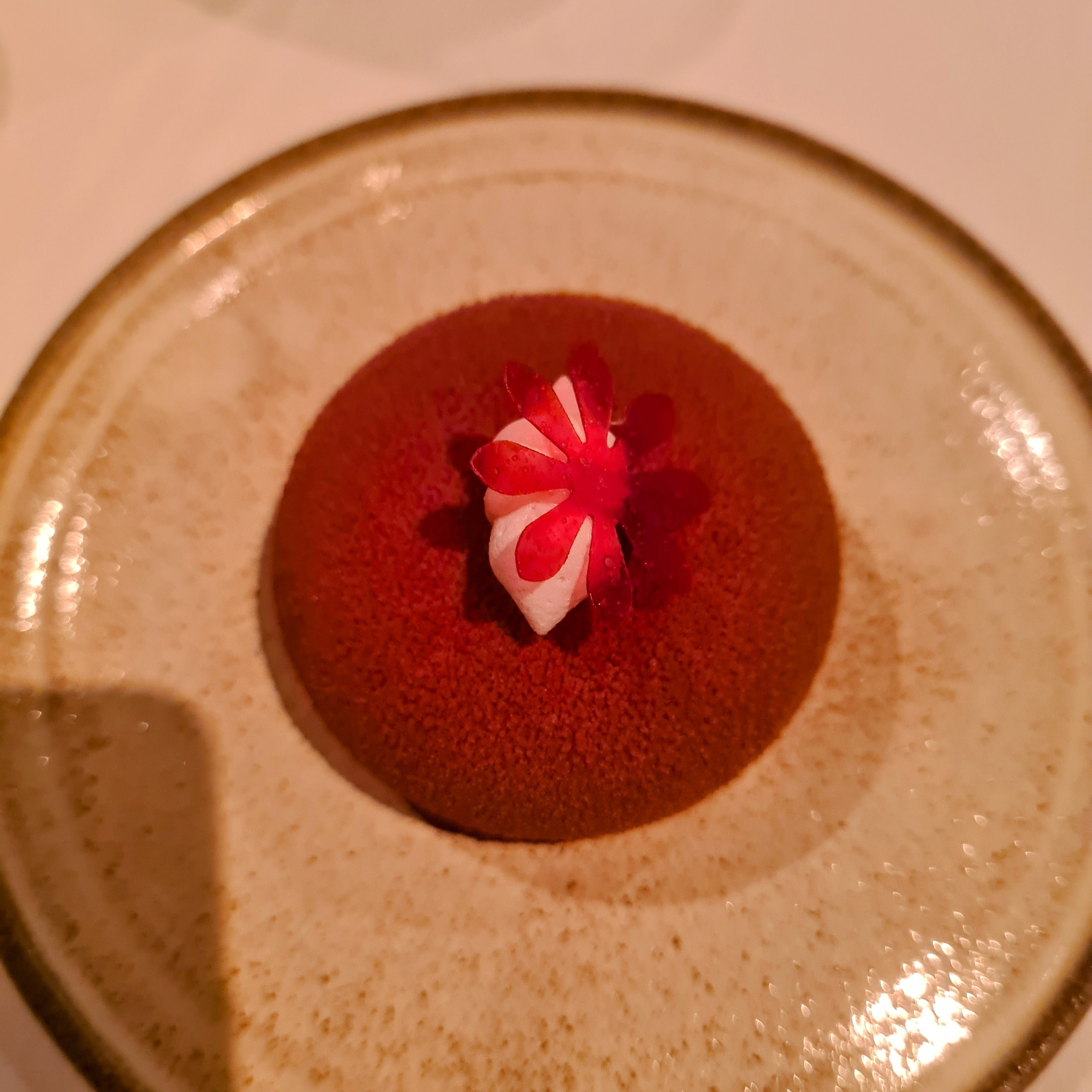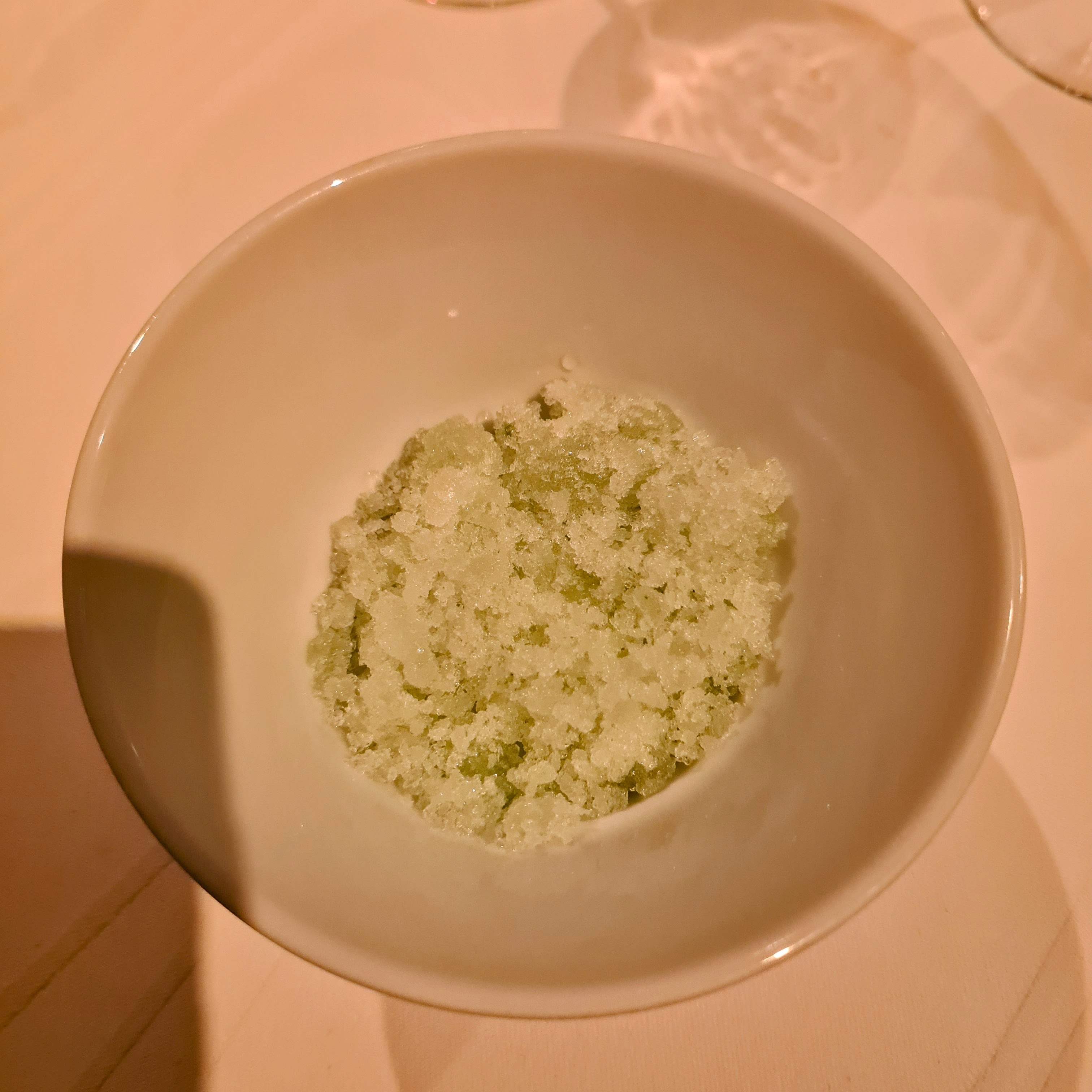 Efter den fine “hovedret”, så kom der en lille ganerenser i form af en skum på saltet citron og en granité på citronverbena. Super frisk og rigtig dejlig. Den kunne nærmest have udgjort det for en dessert i sig selv, men der kom faktisk endnu mere på bordet.