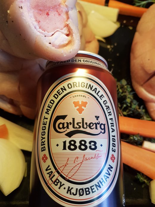 I går var jeg en tur i køkkenet med et par svineskanke, lidt Carlsberg 1883, selleri, kartofler, grønkål, blåskimmelost og lidt andre småting. Jeg tog lidt billeder undervejs, så jeg tænkte, at jeg lige ville dele en slags opskrift med jer, men husk nu, at en opskrift altid kun er vejledende for jeres egen kreativitet.